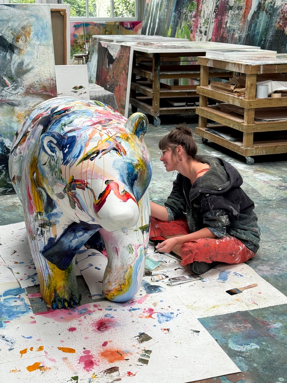 Ana Zoob – Painting the Hero Bear Sculpture “Blum” in her studio.